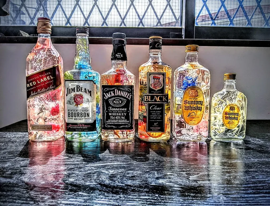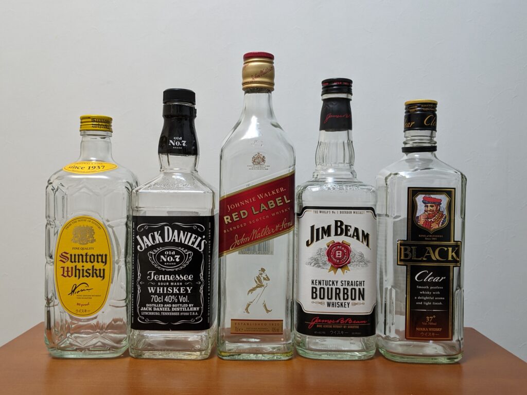 そんな生活を繰り返していたとき、フとキッチンを振り返ってみると大量のウイスキーの空き瓶が生まれていました。そんな空き瓶を眺めていると、なんだかデザイン会社の血が騒いでしまいました。