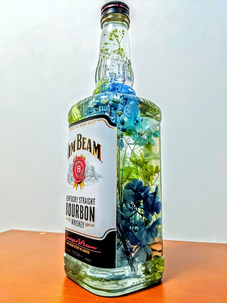そんなわけでウイスキーの空き瓶でハーバリウムを作りました。