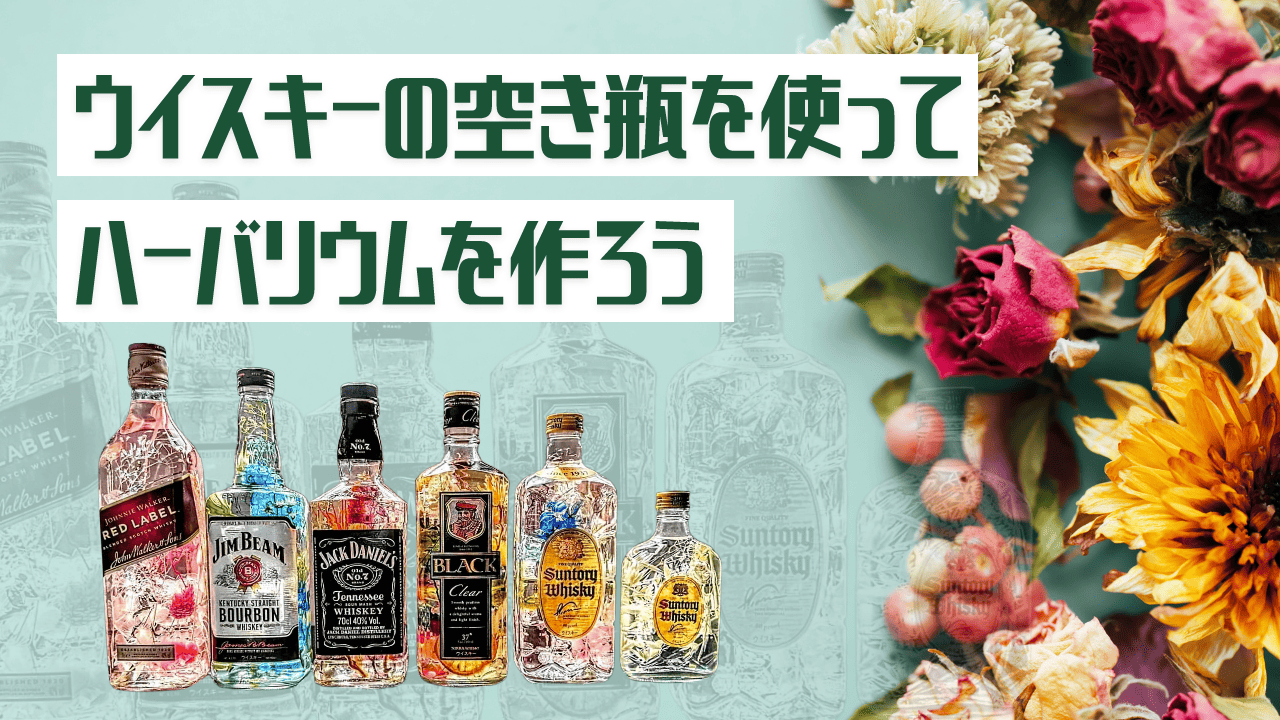 そんなわけでウイスキーの空き瓶でハーバリウムを作りました。