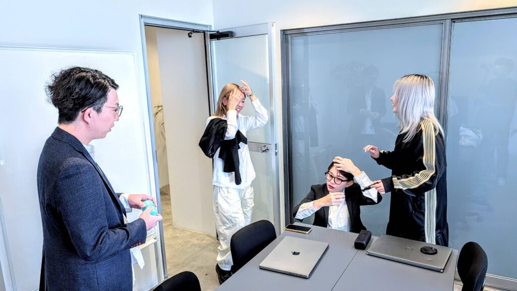 もちろん髪型のセットにも十分に時間をかけています。かけすぎてスケジュールが少し押しています。