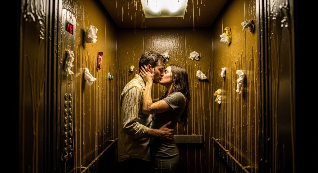 ただしエレベーターの中がやたらと汚い……ベタベタしている?