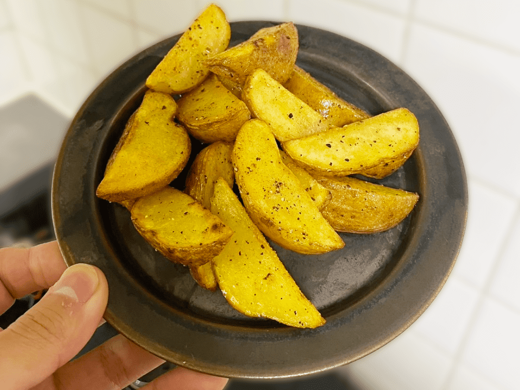 いつもフライパンで転がしながら、油足りないな〜と思うので、油を足しながらいい感じに揚げ焼きしてます。