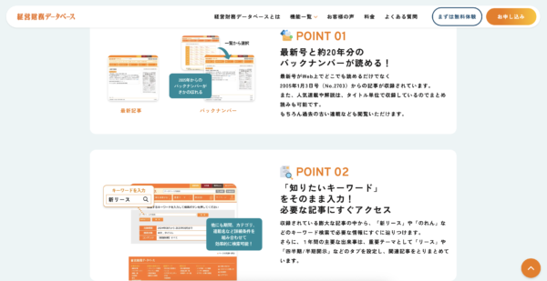 そのため今回のLPでは、“週刊誌のWeb化”ではなく、“経営財務の情報基盤としてのWebサービス”であることを正しく伝える必要がありました。