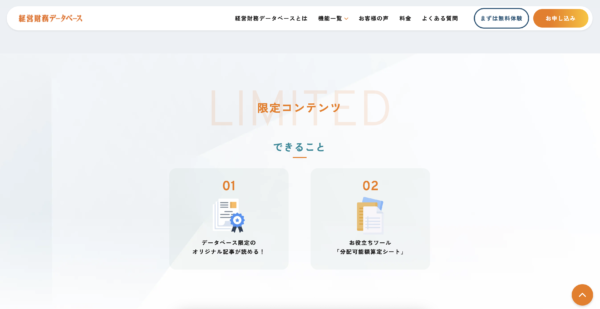 本ランディングページは、会計・税務業界で圧倒的な知名度を誇る週刊税務通信を発行する税務研究会が、週刊経営財務のWeb版となる「経営財務データベース」のLPです。